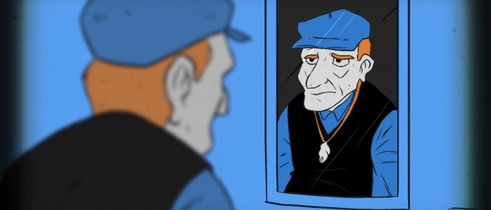 Así, con una paleta limitada en naranjas y azules definiríamos el presente y el pasado, donde debería lucir la caricatura del cantante del grupo, a todo color. Tuve la suerte de contar con alumnos de ilustración de la Escuela Superior de Diseño de Palma que estuvieron haciendo las prácticas conmigo. Desde aquí les mando un cálido abrazo. Honestamente, creo que lo mejor del vídeo es sin duda la narrativa. Por eso paso a explicarla detalladamente en las siguiente imágenes.