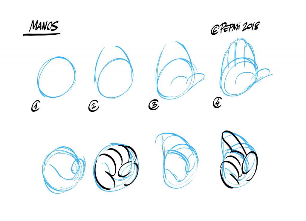 Esta es una técnica muy sencilla para dibujar manos que aprendí en el libro «Dibujos animados. El dibujo de historietas a su alcance» de Preston Blair. Es un libro completísimo que yo recomendaría a todo aquél que quiera iniciarse en el mundo de la animación y sobretodo a los que les guste la animación tradicional. Empieza desde un nivel cero de dibujo y llega hasta complicados cálculos de movimientos de cámara. Sin duda un libro fantástico.